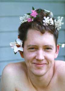 I have a few mementos from him—photos and such—and they fill me with warmth when I look at him in his heyday. Here’s a photo of him from 1968 with his hair done up in flowers most likely by his sisters. He looks so cute, doesn’t he?