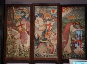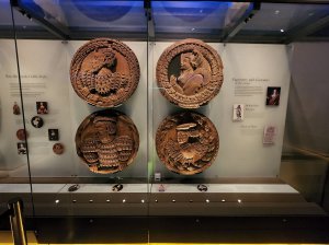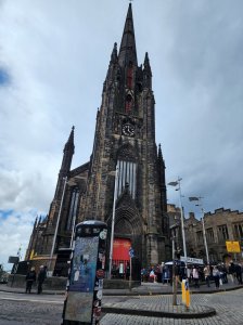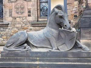 The bus picked us back up and then we continued on to Kilmartin Glen to look at some standing stones and to take a rather long walk to see some cairns. Somehow I don’t have any pictures of this; I’m not sure why—it’s not like me. Maybe something happened with the camera. But they were fine, as far as standing stones go—they were sort of in the middle of a field so I had to be careful of sheep pellets. But I enjoyed the walk, even though my foot was hurting. Still I was glad to get back on the bus. Later we stopped at a little church in Kilmartin with gravestones from the 1300s-1500s, whose carvings were faint now, but still cool. And then we headed down to Kennacraig so we could board the ferry. It was a long ferry ride (and damp, so damp)—maybe two hours—but as always I remained outside to take in the air, hoping to see some whales or dolphins. (I saw neither.)