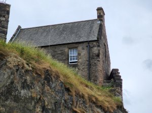 After Kilchoman, we went to Caol Ila (pronounced Cull-EE-lah), on the east coast of Islay, owned by Johnny Walker (like Cardhu in Moray, Scotland, is a Johnny Walker distillery) which was just a whisky stop (I just got a Diet Coke because after five or six drams, I was pretty pickled already). The driver, Robbie, was very kind and because I was walking with my cane, he said he’d meet us down below in the disabled parking area to get us after our visit to the distillery. Everyone except the Brazillian met up there. Apparently, he hadn’t heard that we were going to meet there. We saw him walking on the long path upward, so Robbie said we’ll just get him at the top of the path. But in the interim, the Brazillian thought, I’ll go down and meet them. So we were up at the top waiting for him, and he was down at the bottom waiting for us. So we drove back down to the bottom but the Brazilian walked back up to the top. It was some Keystone Cops hilarity happening. We must have done this dance a couple more times, and I said to the tour group, we’d lost him to the Angel’s Share, which made everyone laugh. (The Angel’s Share is how much whisky evaporates each year that a whisky is in the cask.) Finally, Robbie walked down by himself and got the Brazilian. It was pretty funny, this back-and-forthing—although I suppose it loses something in the translation.